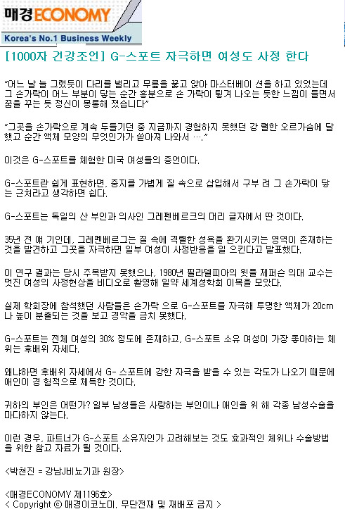 ¸ÅÀϰæÁ¦[1000ÀÚ °Ç°Á¶¾ð] G-½ºÆ÷Æ® ÀÚ±ØÇÏ¸é ¿©¼ºµµ »çÁ¤ ÇÑ´Ù