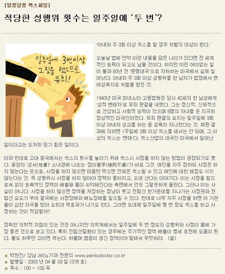 [¾ËÄá´ÞÄá ¼½½ºÆÄÀÏ10]Àû´çÇÑ ¼ºÇàÀ§ Ƚ¼ö´Â ÀÏÁÖÀÏ¿¡ ¡®µÎ ¹ø¡¯? |